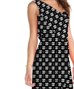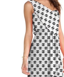 Dripping Chanel Logo Black and White Fabric