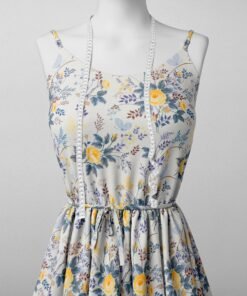 Off-White Yellow Rose & Butterfly Floral Fabric