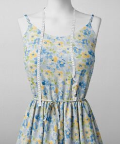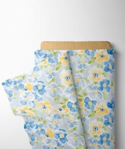 Watercolor Sky Blue and Yellow Floral Fabric