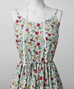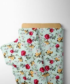 Off-White Ground Dusty Blue and Gold Rose Print Fabric