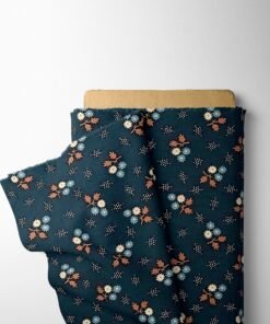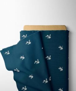 Steel Blue Floral Linen Blend Fabric