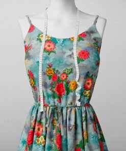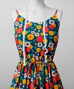Teal Small Floral Print Fabric