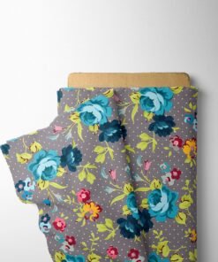 Teal Rose Dotted Floral Fabric
