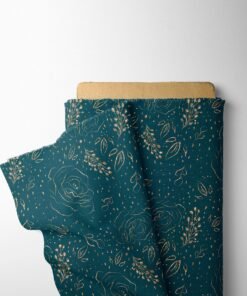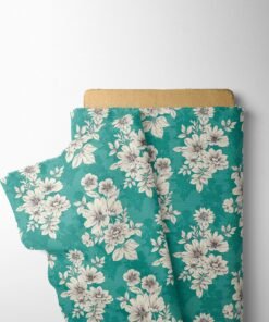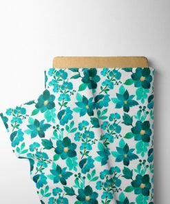 Teal Floral Linen Fabric
