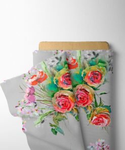 Silver Grey Rose Bouquet Fabric