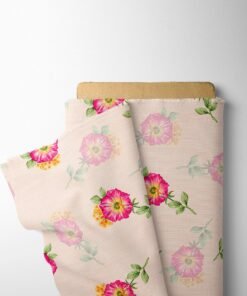 Soft Pink Rose Floral Linen Fabric