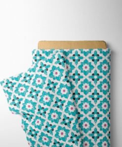 Teal Floral Tile Cotton Fabric