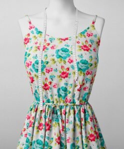 Vintage Teal & Pink Floral Cotton Poplin