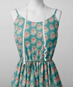 Teal Small Floral Print Fabric