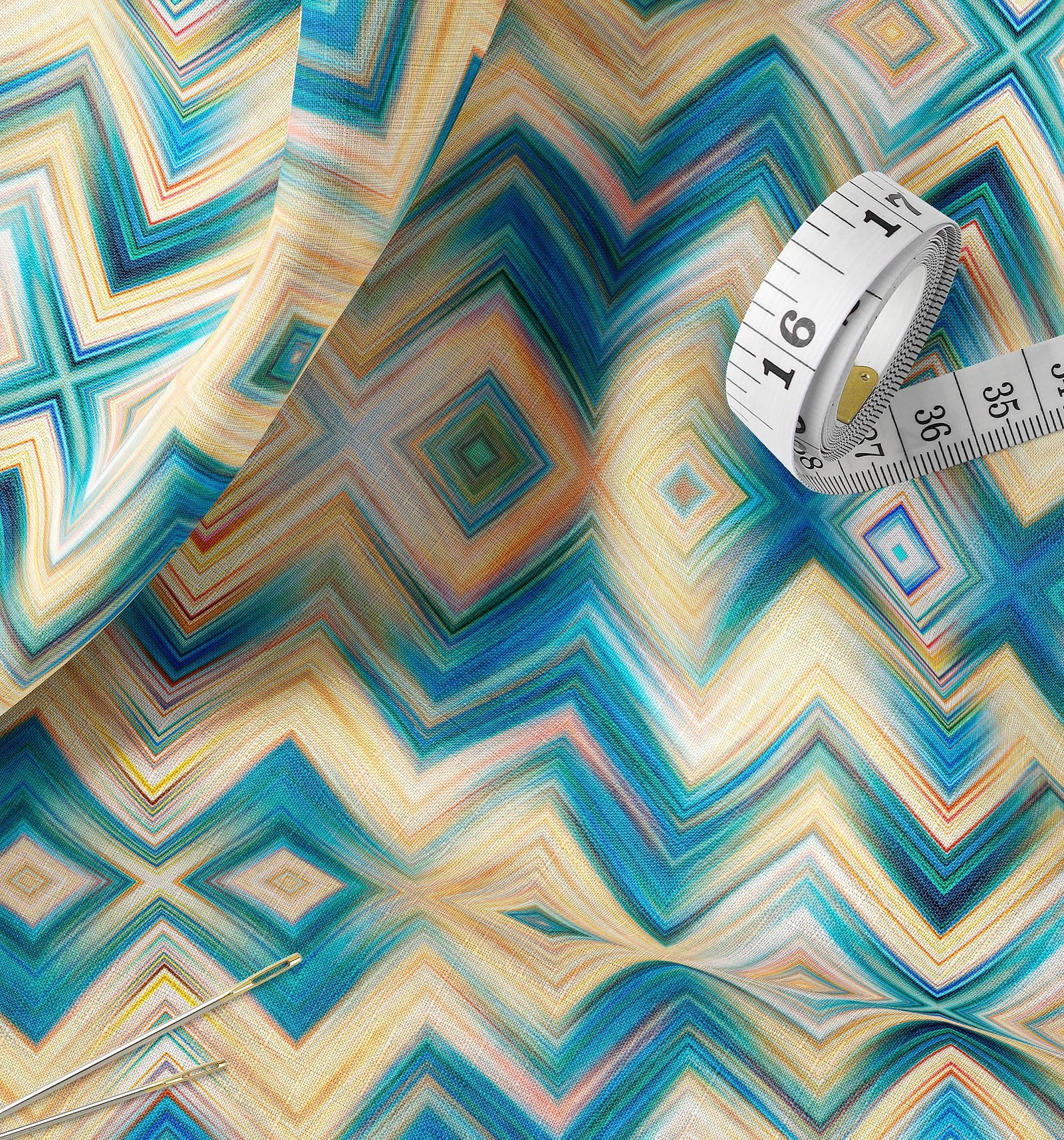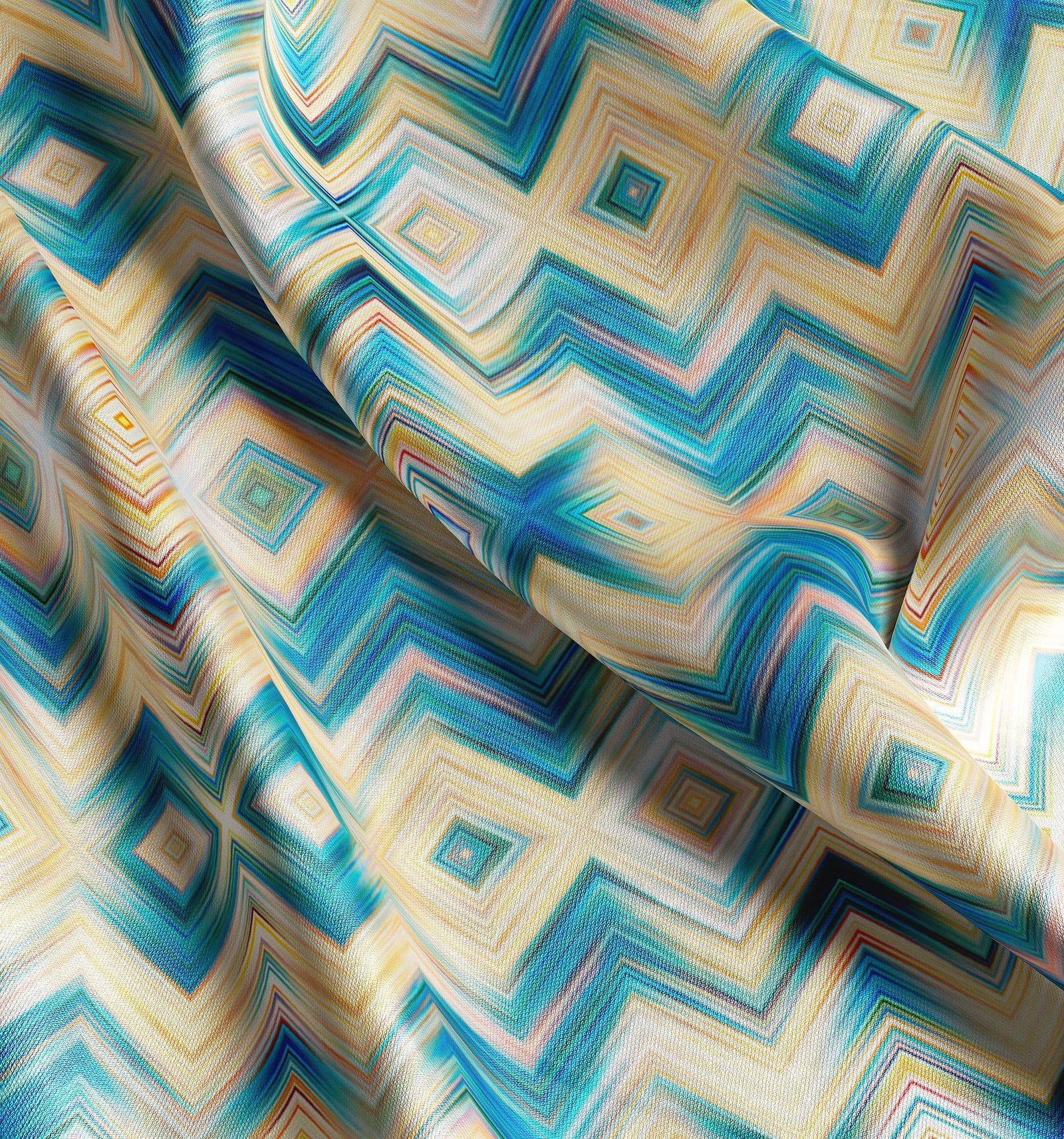 Aqua Chevron Diamond Fabric