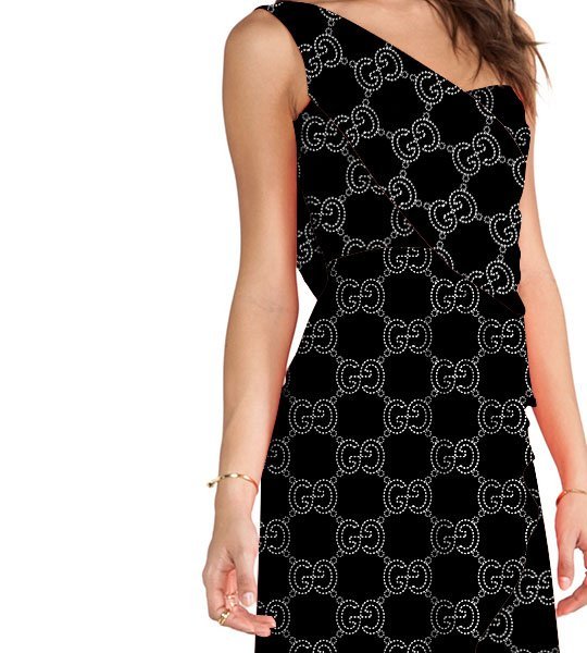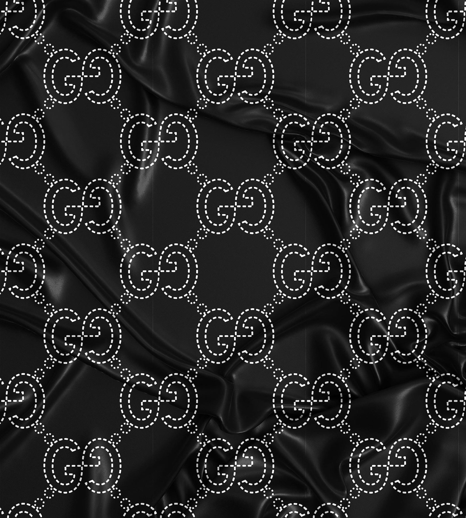 Black & White Interlocking GG Dashed Circle Pattern Fabric