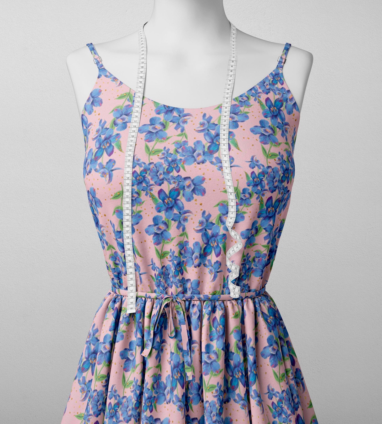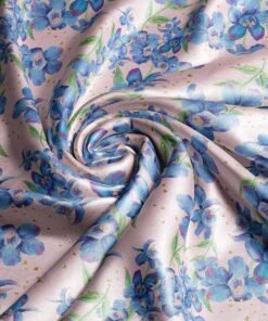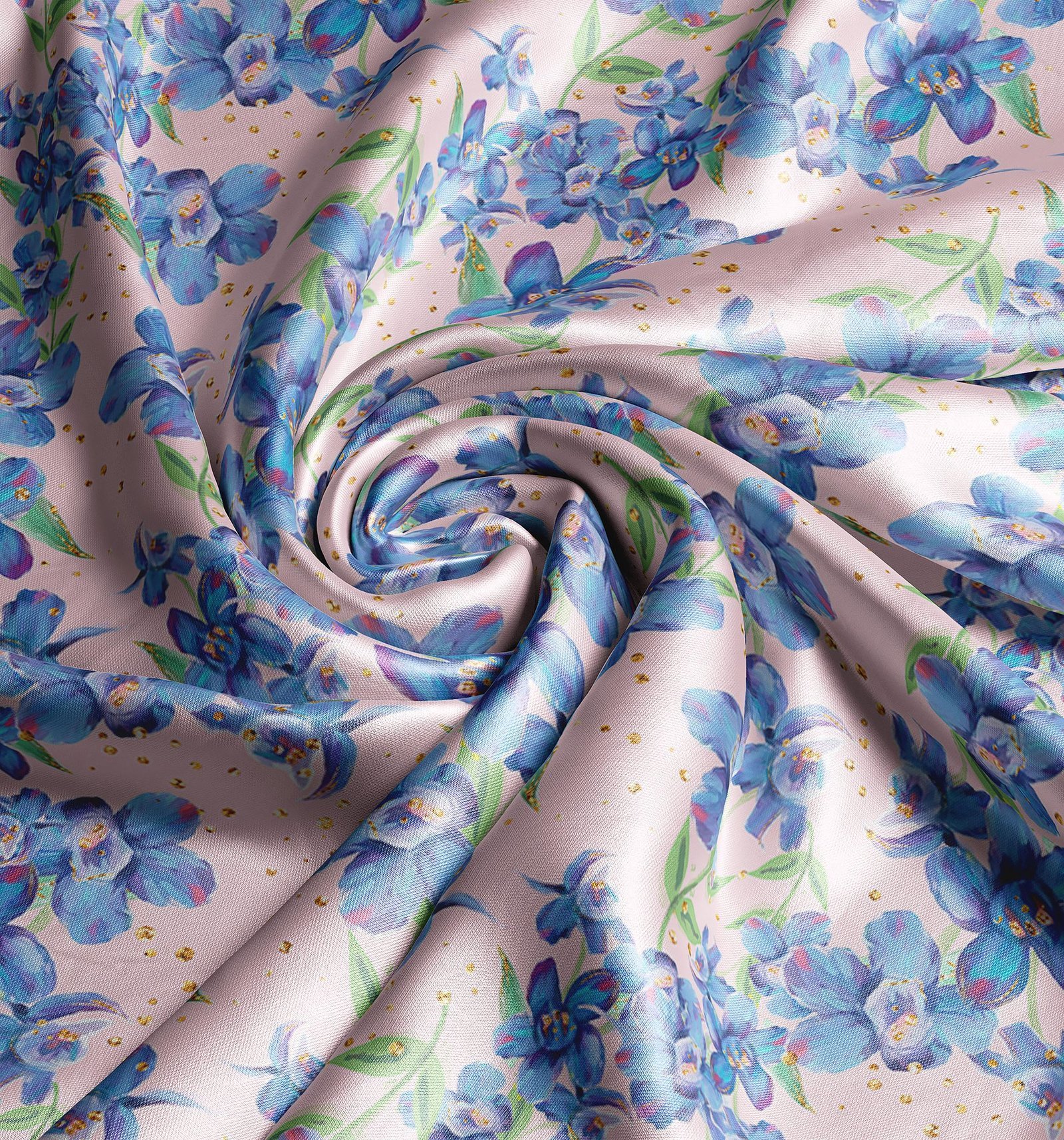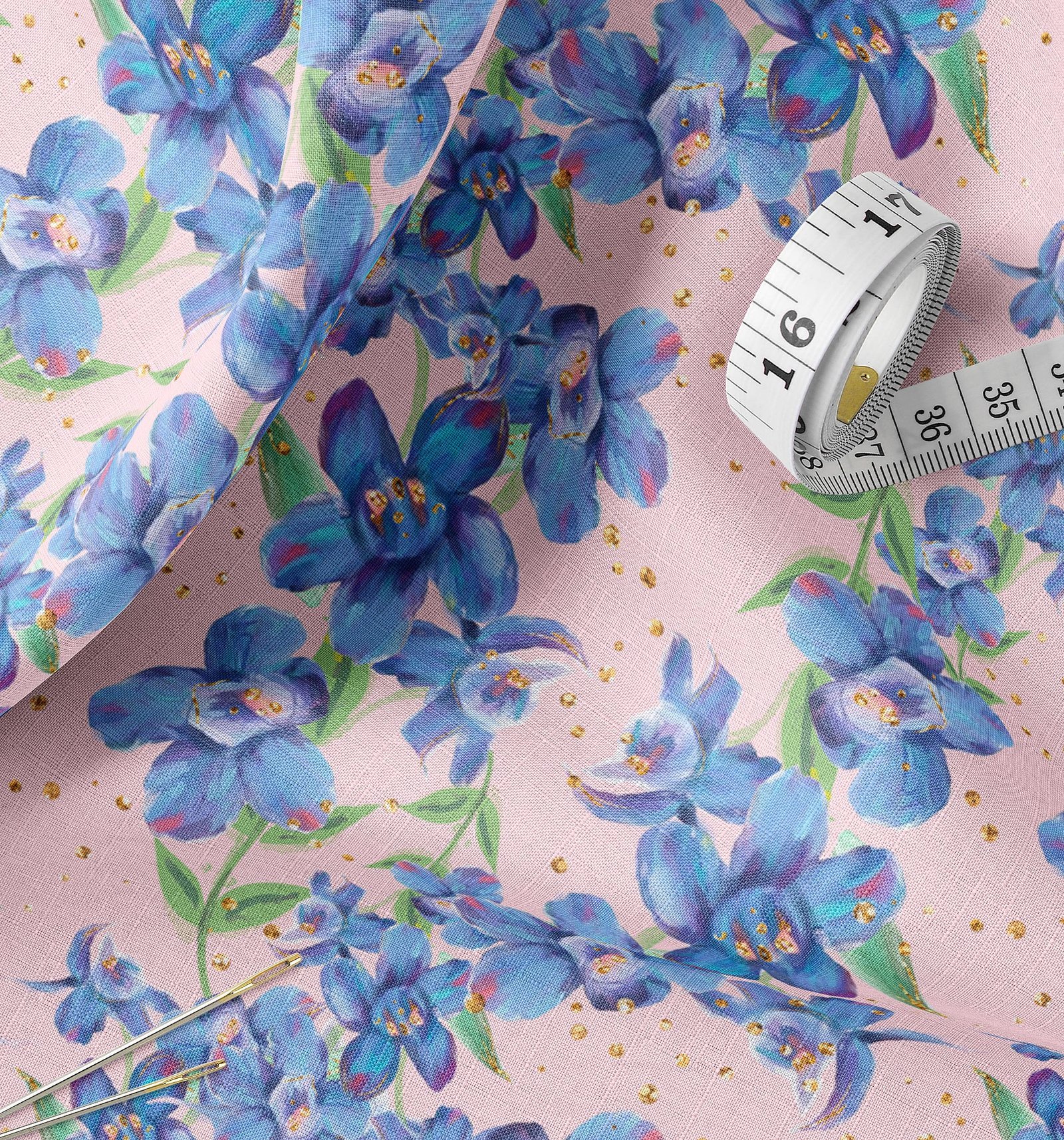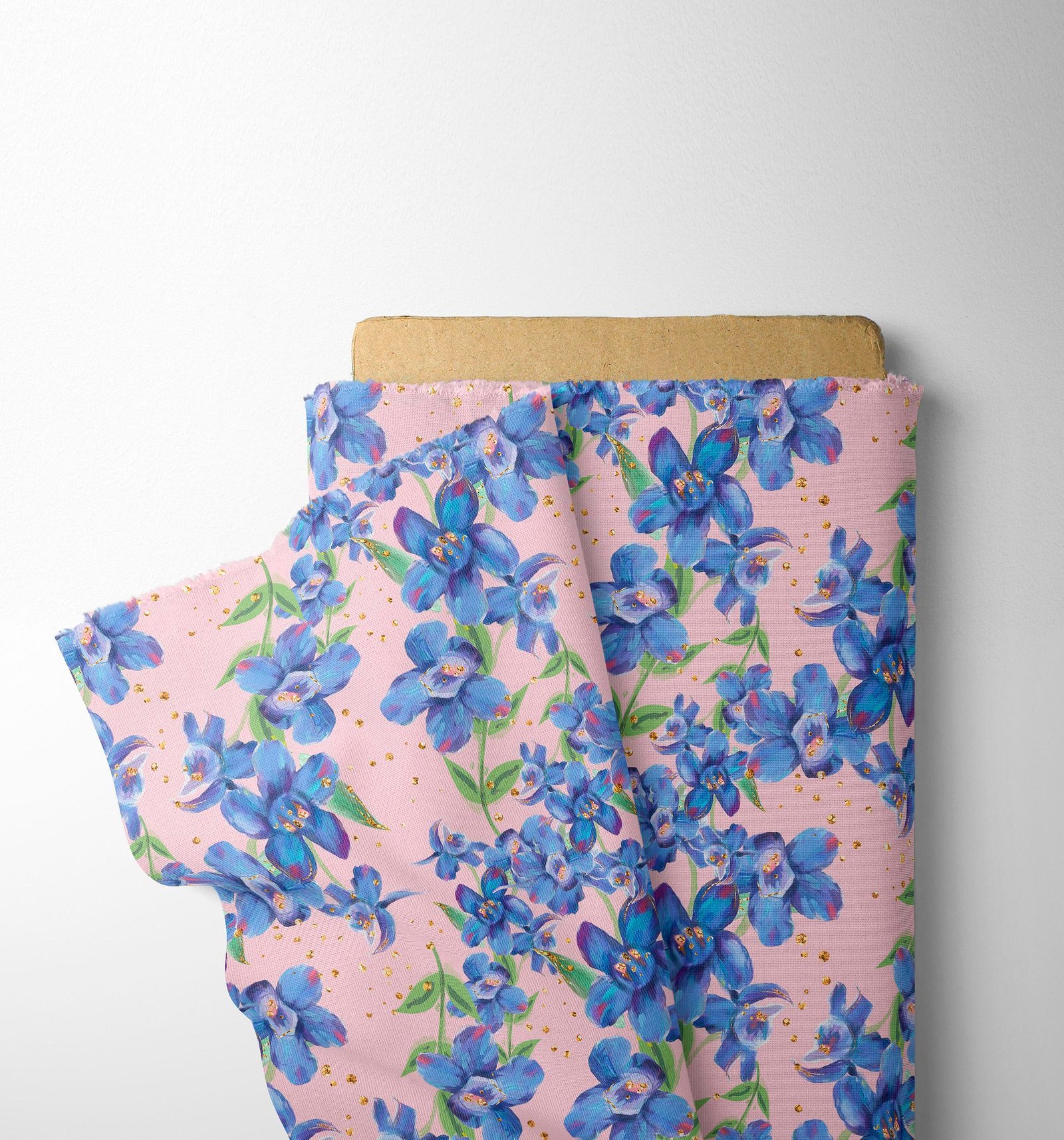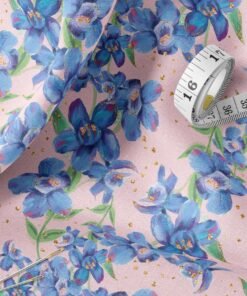 Blush Pink & Sapphire Blue Glitter Floral Fabric