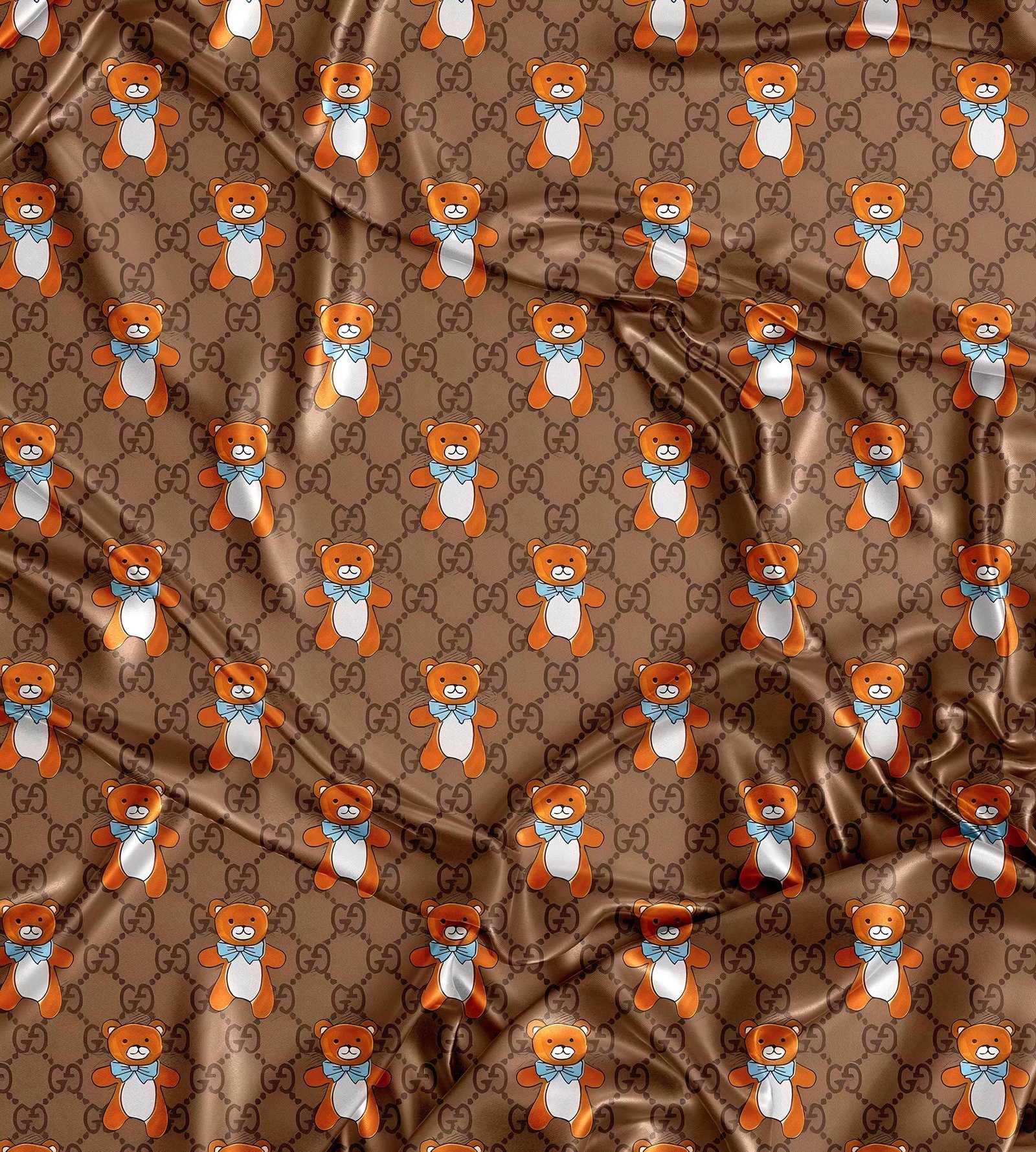 Brown Teddy Bear Print Fabric