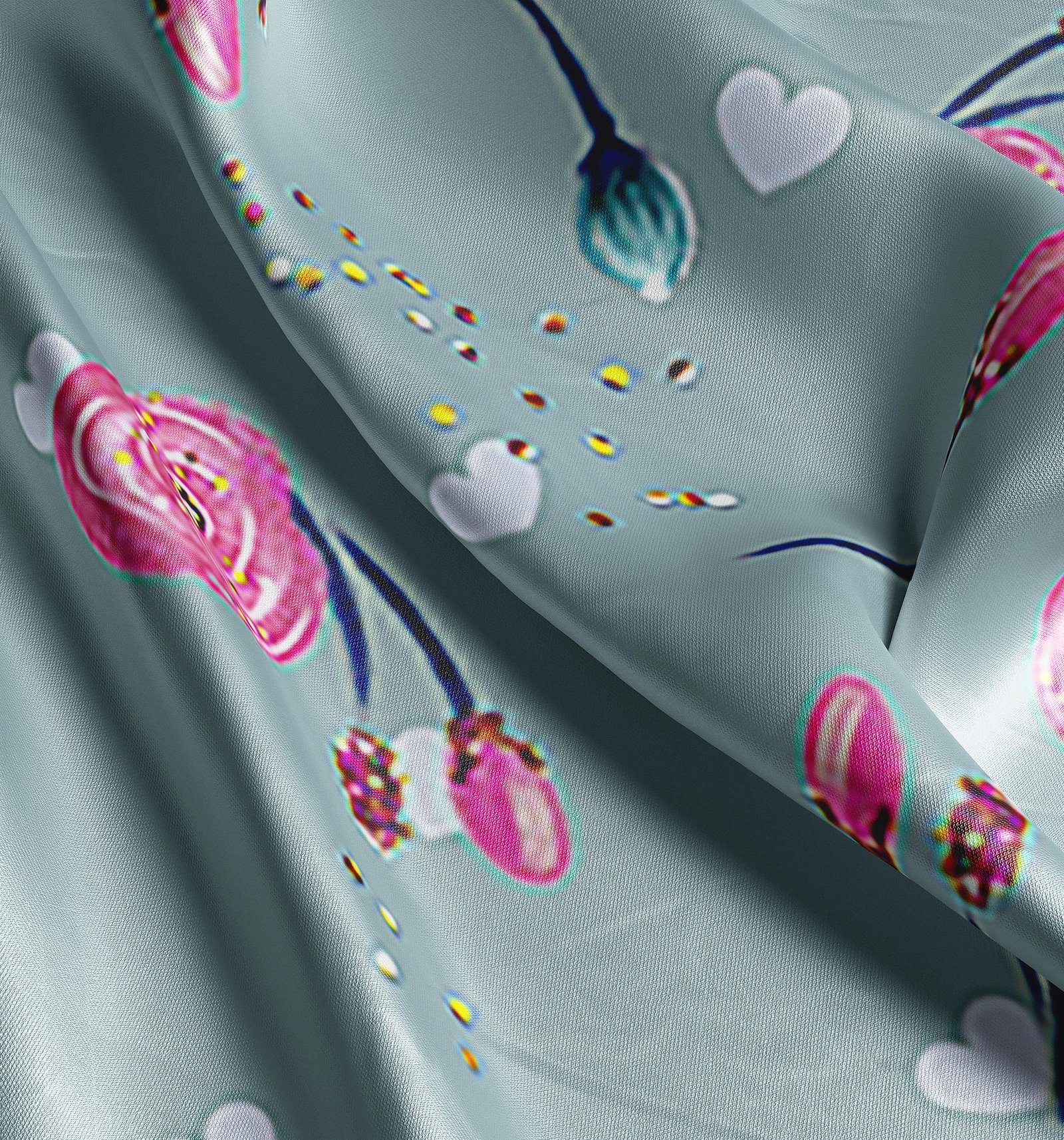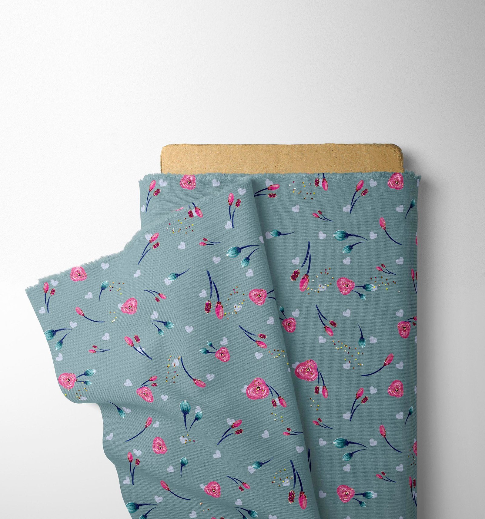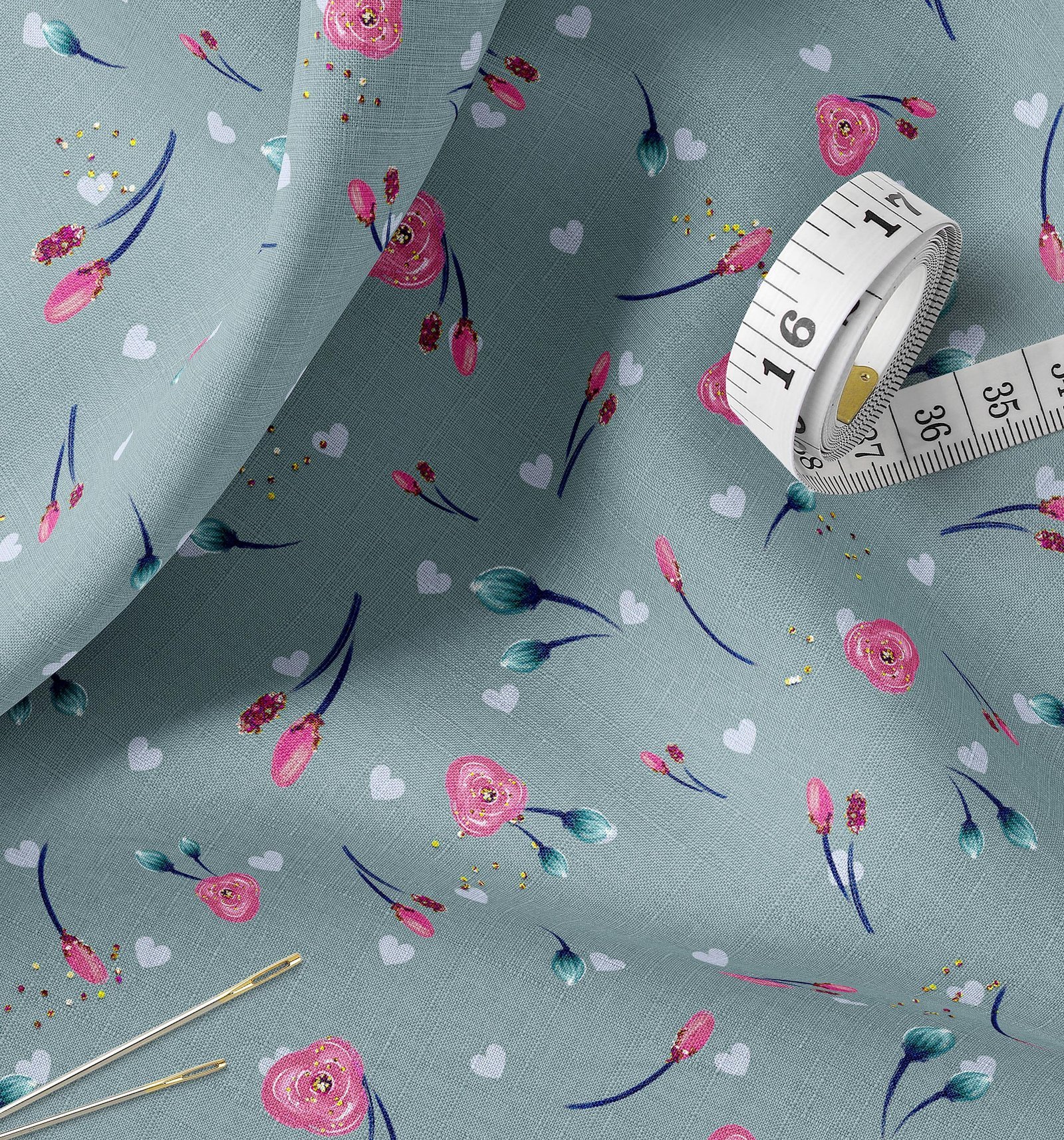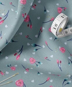 Dusty Blue Glitter Floral Fabric