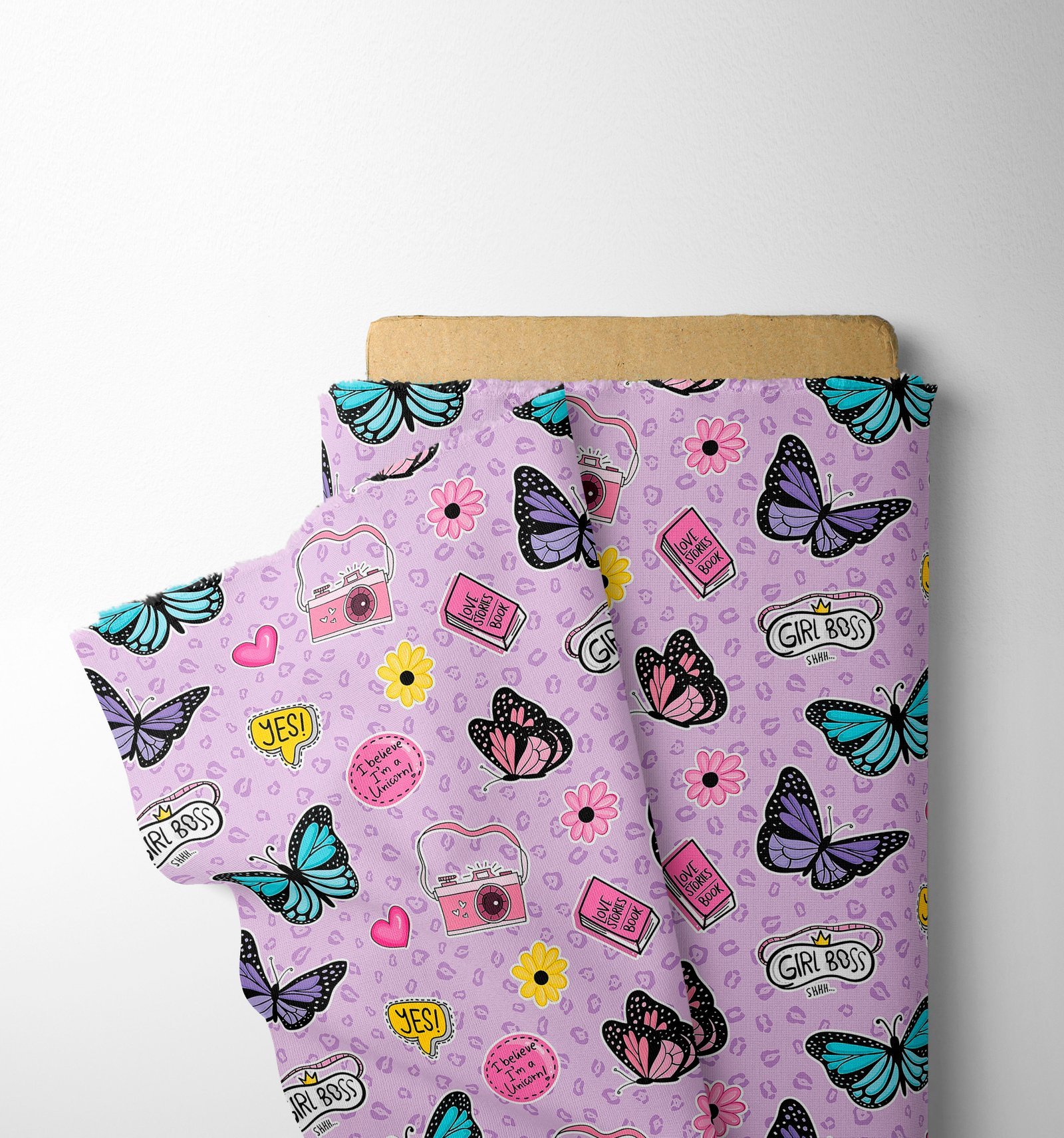 Lavender Leopard Print Girl Power Patchwork Fabric