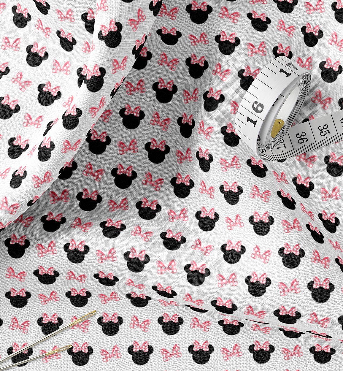 Minnie Mouse Pink Bow and Ears Cotton Fabric