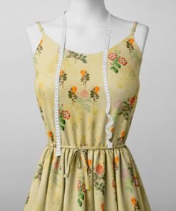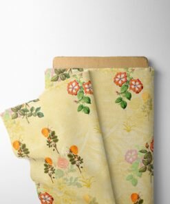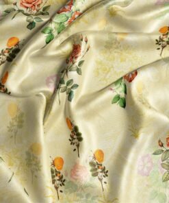 Pale Yellow Floral Satin Fabric