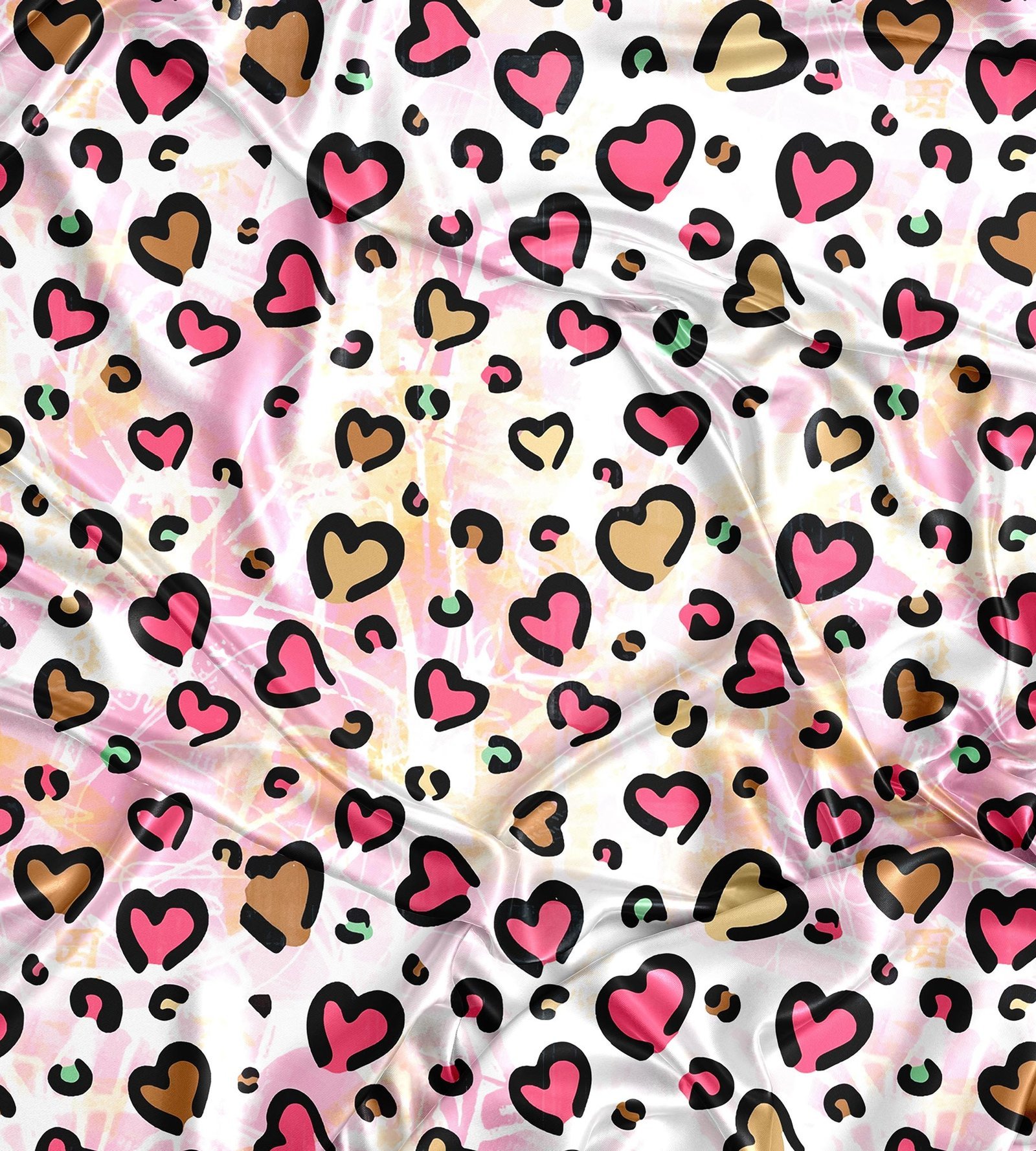 Pink & Peach Heart Leopard Print Fabric