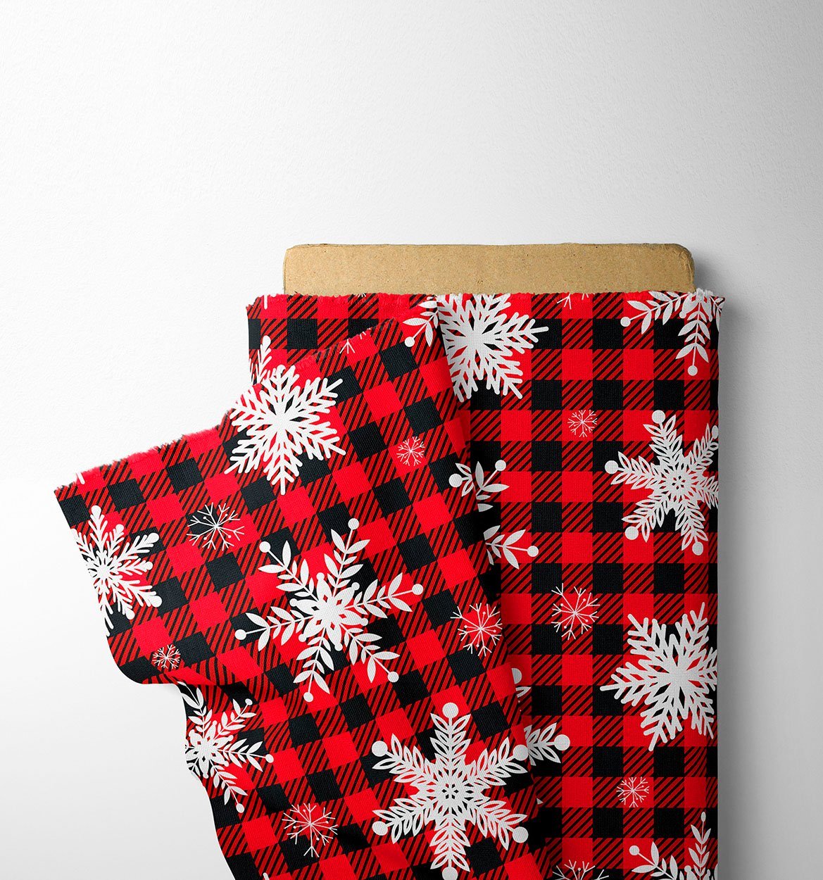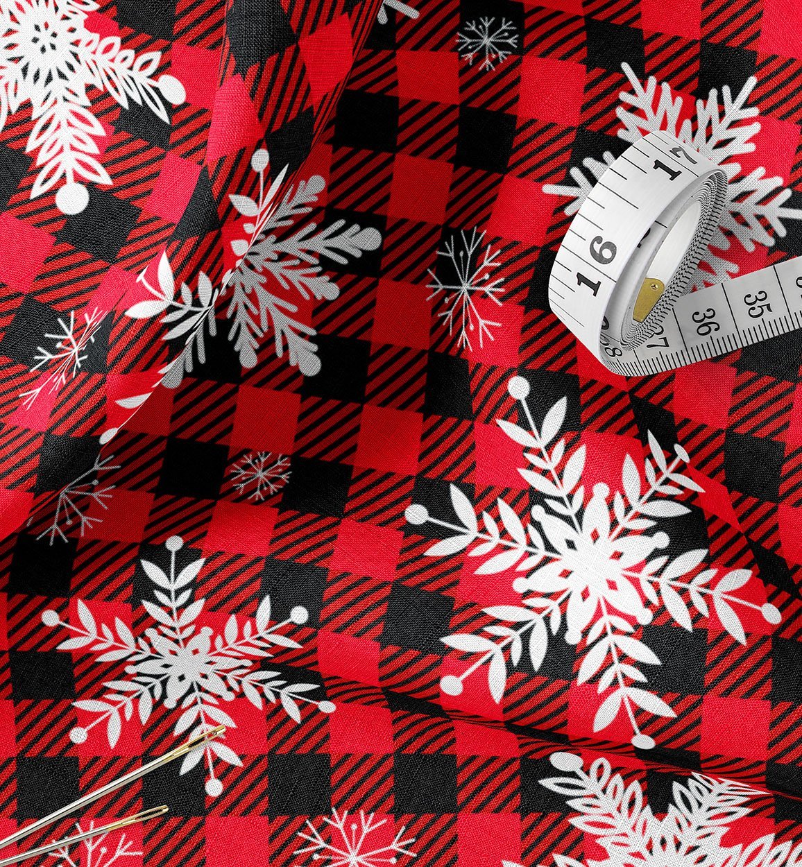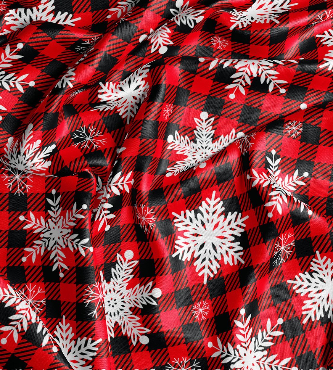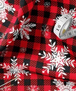 Red & Black Buffalo Plaid Snowflake Fabric