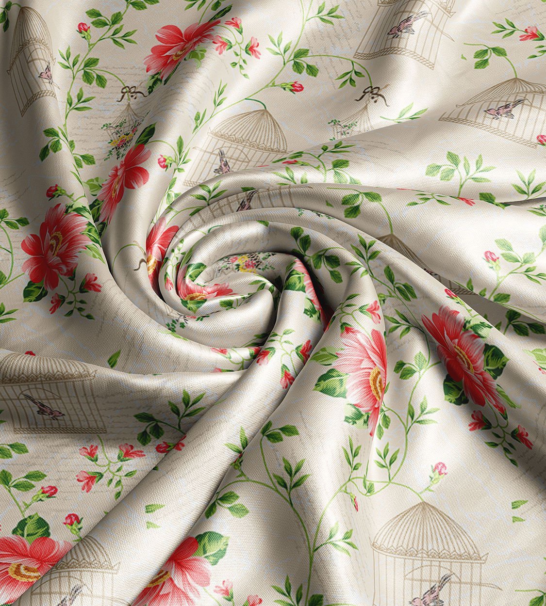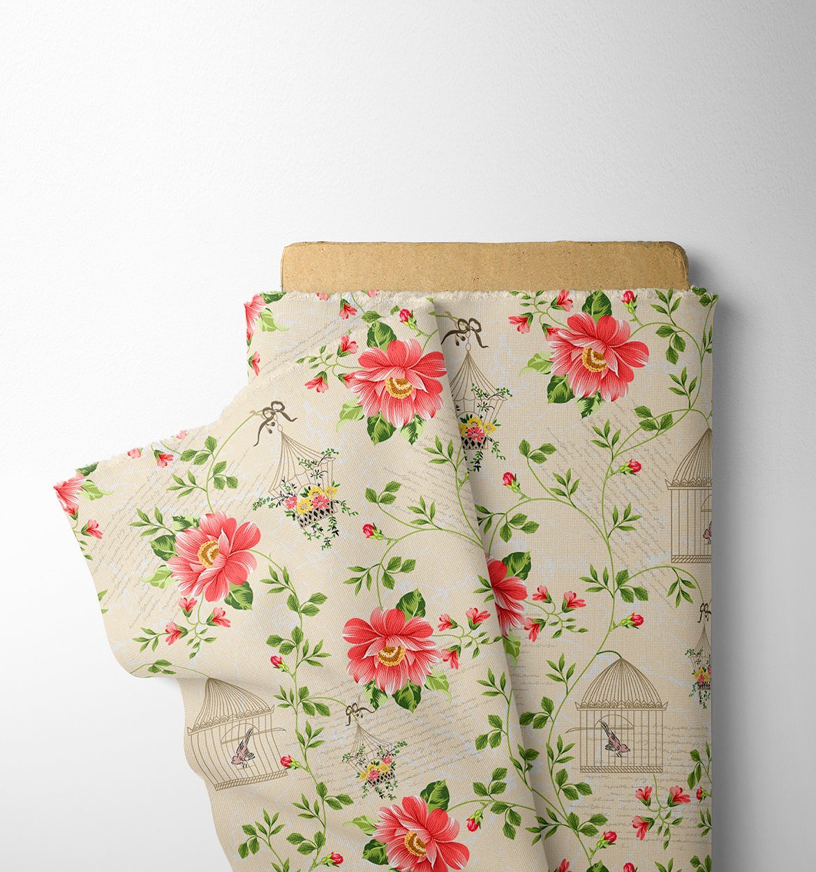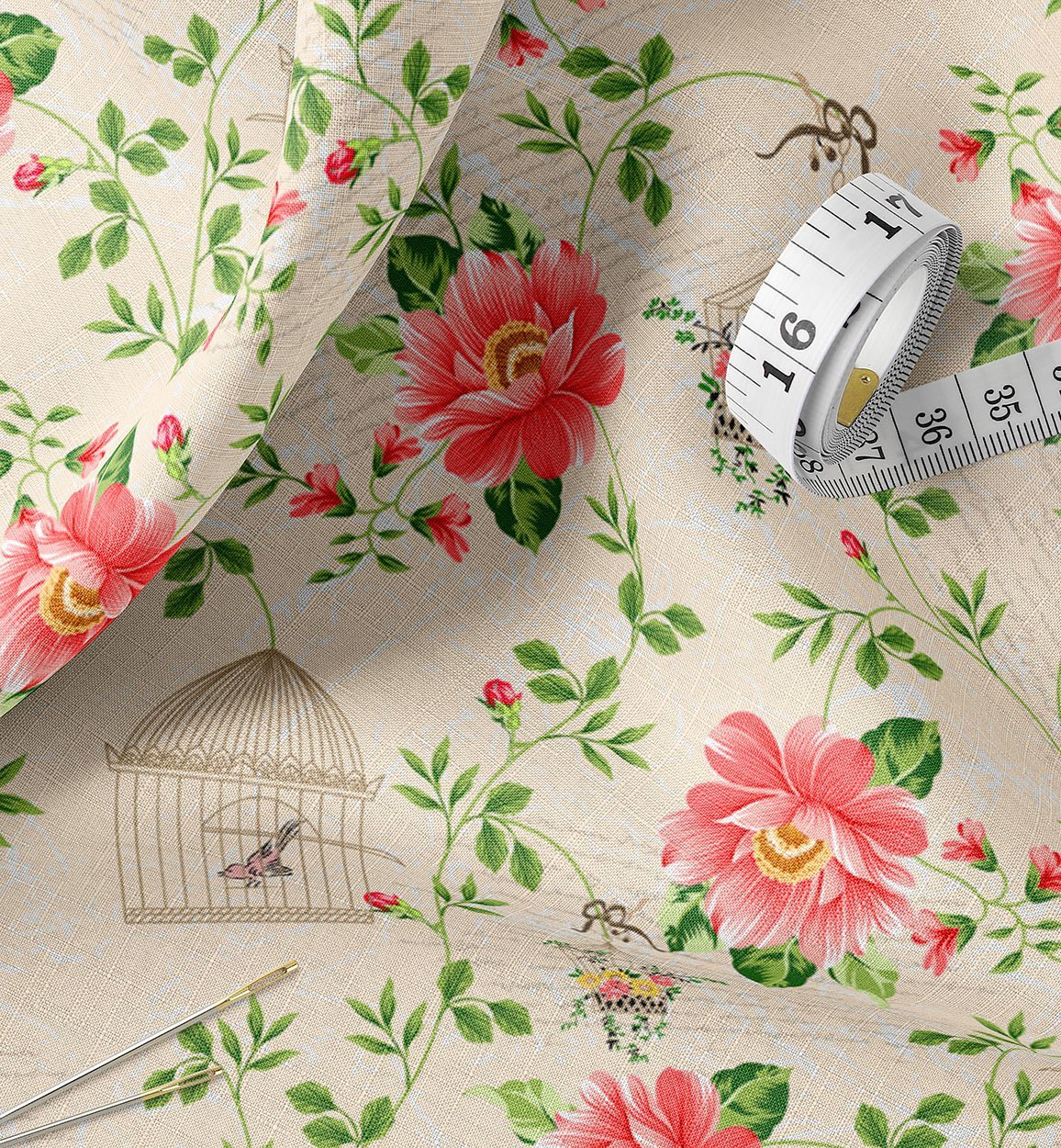 Romantic Rose & Birdcage Floral Fabric