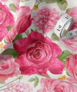 Romantic Rose Garden Watercolor Cotton Fabric