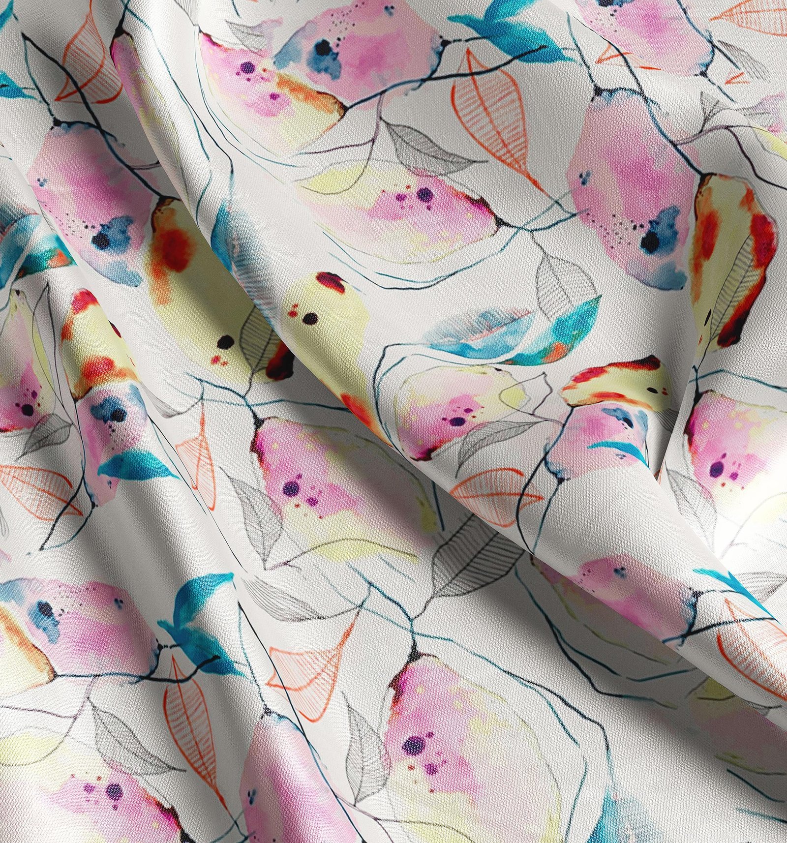 Watercolor Abstract Leaf Print Fabric